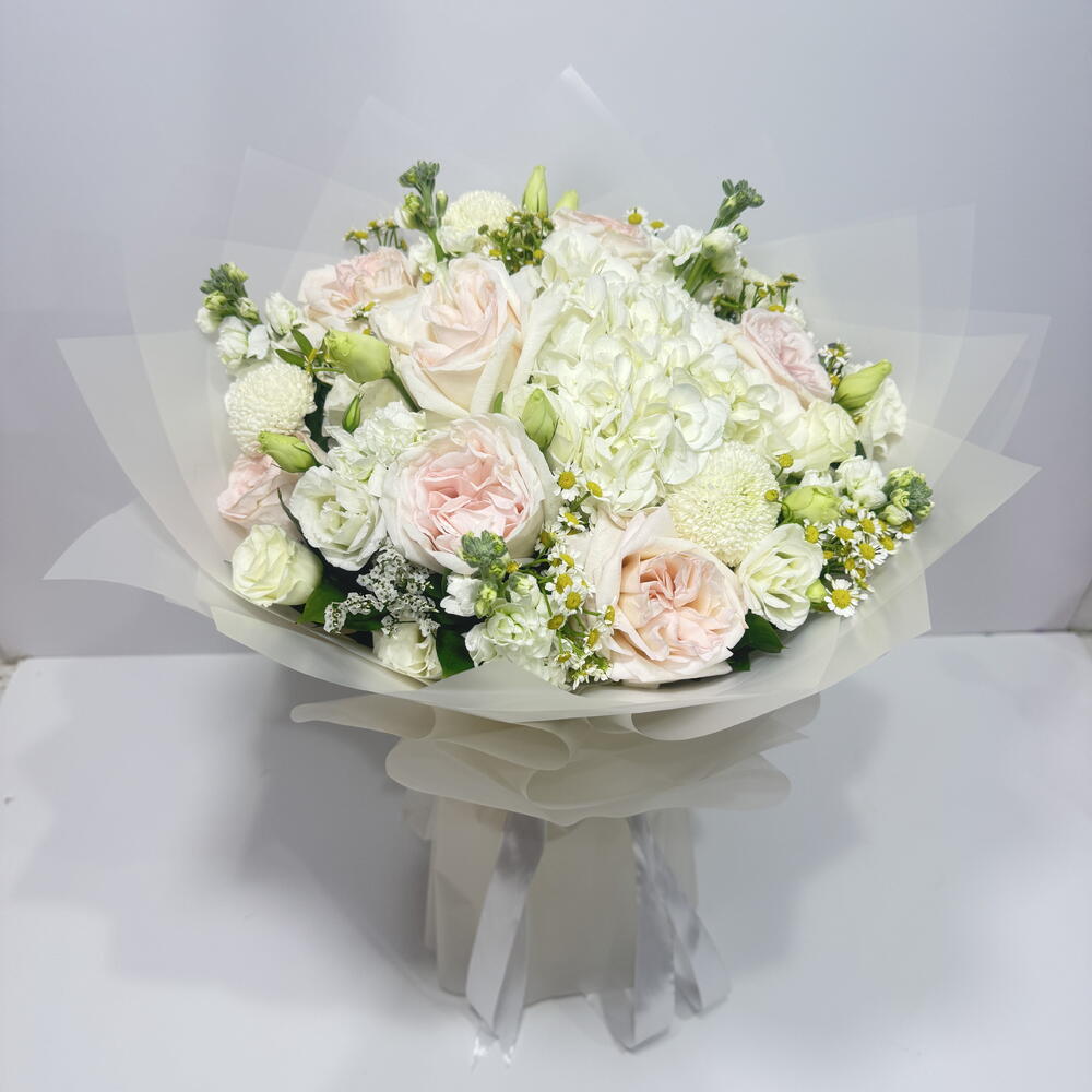 Hydrangea - 1 pcs ohara rose - 7 pcs lisanthus - 4 pcs matholia - 4 pcs