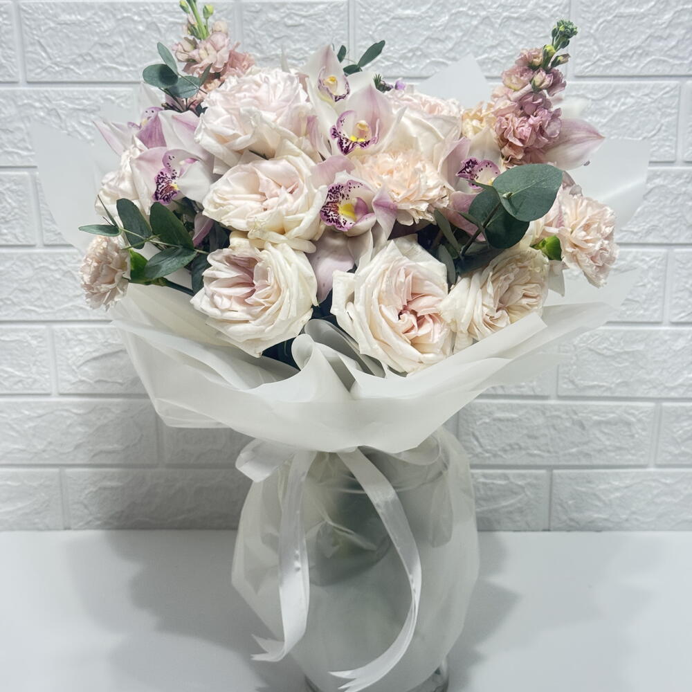 carnation - 4 pcs cymbidium - 7 pcs mathiola - 2 pcs ohara rose - 9 pcs